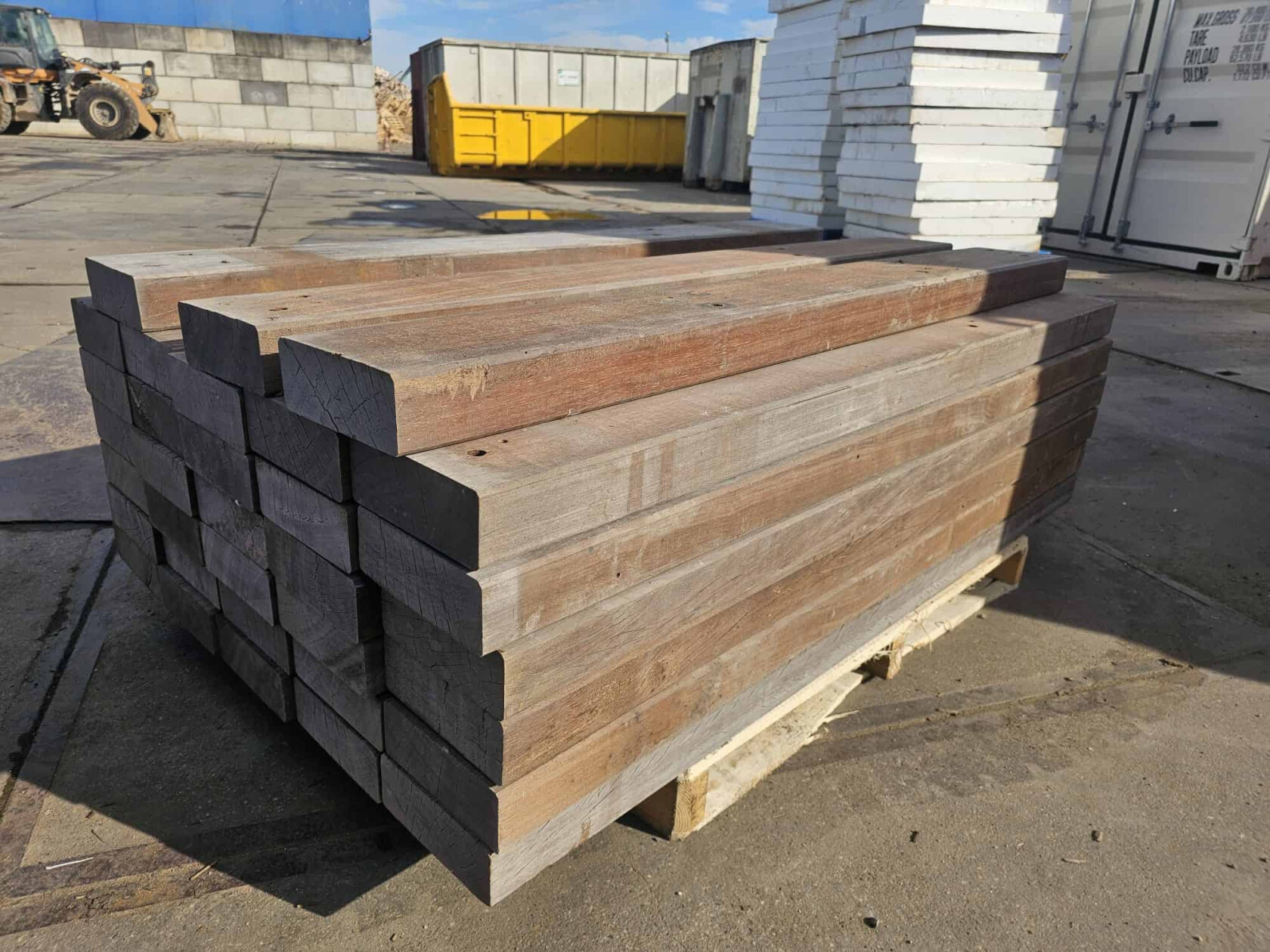 Hardhouten balken, geschaafd. Goed voor een 2e Kans! Afmetingen: 1500 x 185 x 68 mm. Aantal: 33 stuks Prijs: €25 per balk