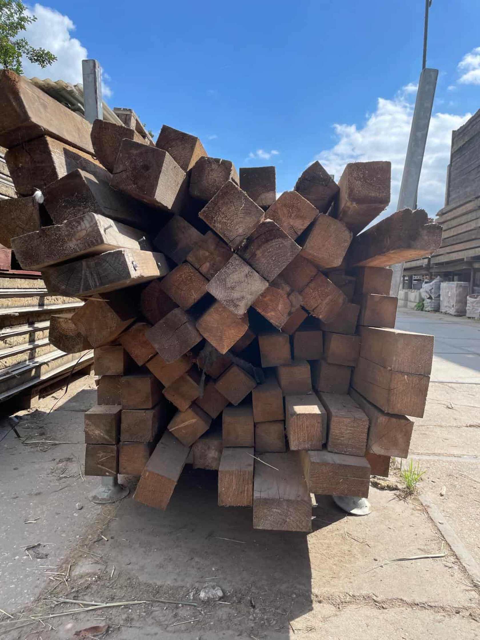 Houten palen, vierkant en in goede staat. Nog goed voor een 2e Kans.