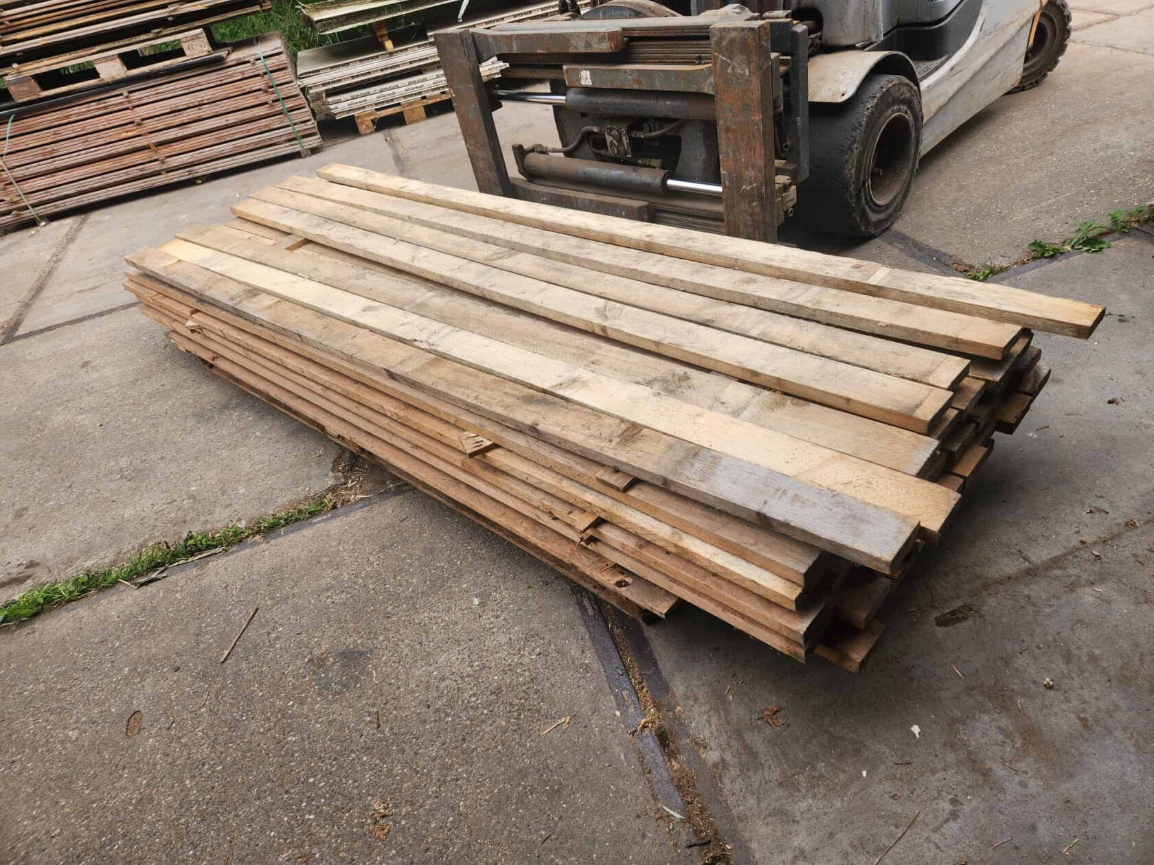 Vurenhouten planken. Goed voor een 2e Kans! Afmetingen: 2910 x 950 x 30 mm. Aantal: 52 stuks Prijs: €3,50 per plank