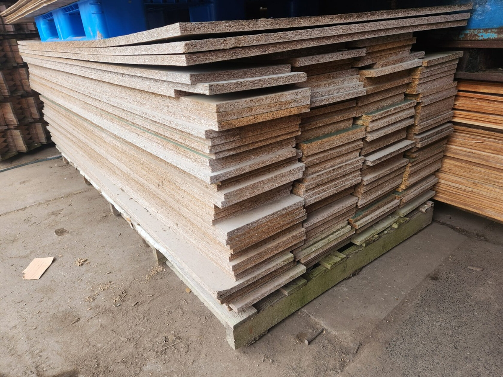 Groene spaanplaat. Prima platen, goed voor een 2e Kans. Afmetingen: 2500 x 300 x 20 mm Aantal: 145 stuks Prijs: €4 per stuk