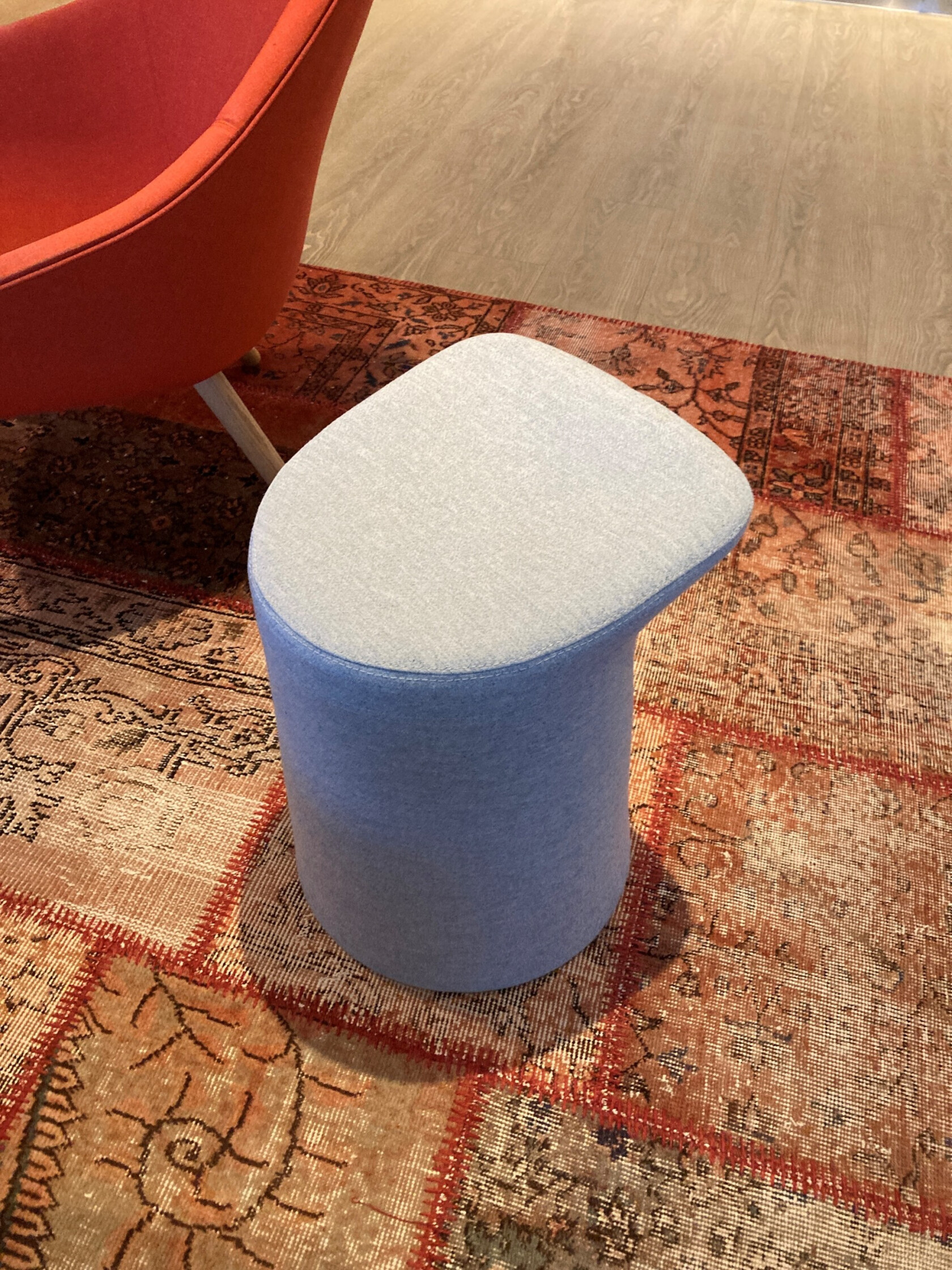 Gestoffeerd grijs krukje / /bijzettafeltje