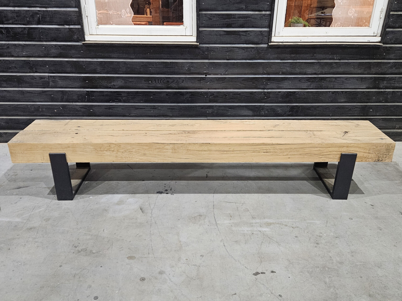 Meubel oude eiken spoorbielzen 245x44 cm inclusief onderstel - WF075