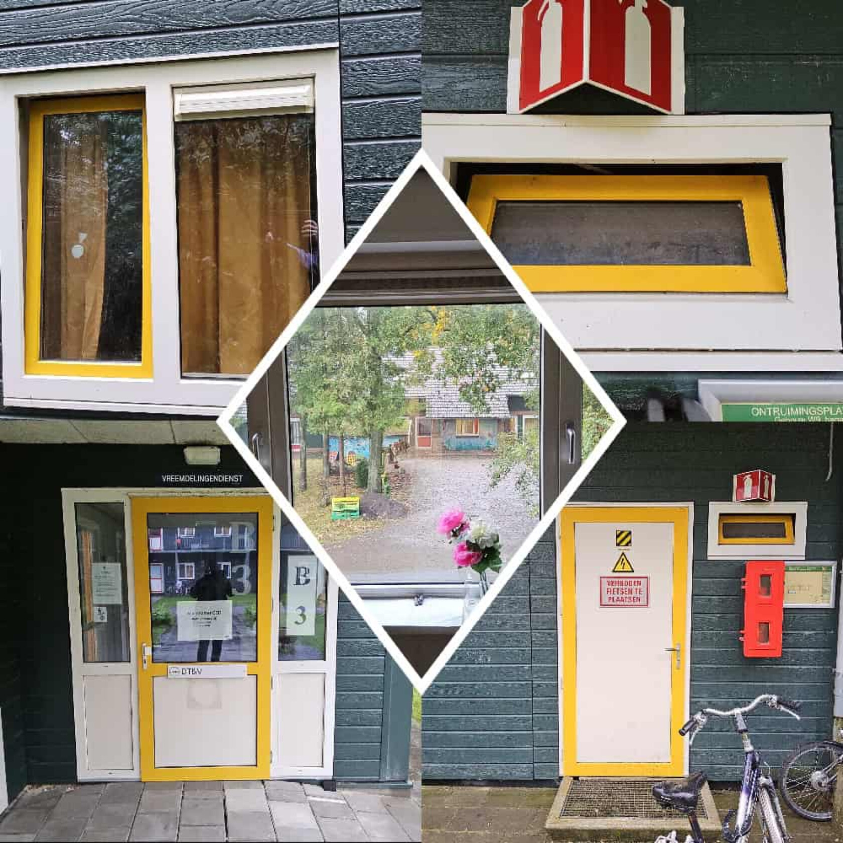 Kunststof buitenkozijnen. Verschillende afmetingen, inclusief glas. Nog goed om te hergebruiken.