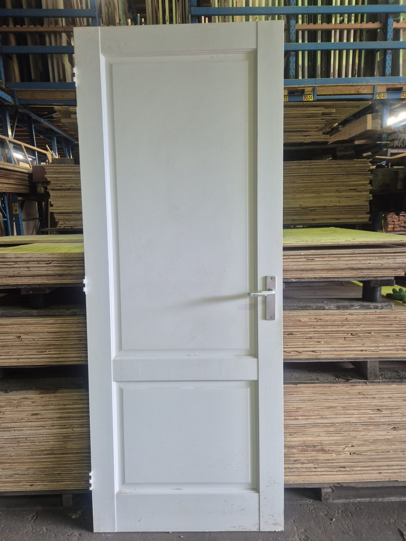 Nette paneeldeur met deurklink. De deur bevat 2 vakken met aan de onderkant een klein vak en de bovenkant een groter vak.