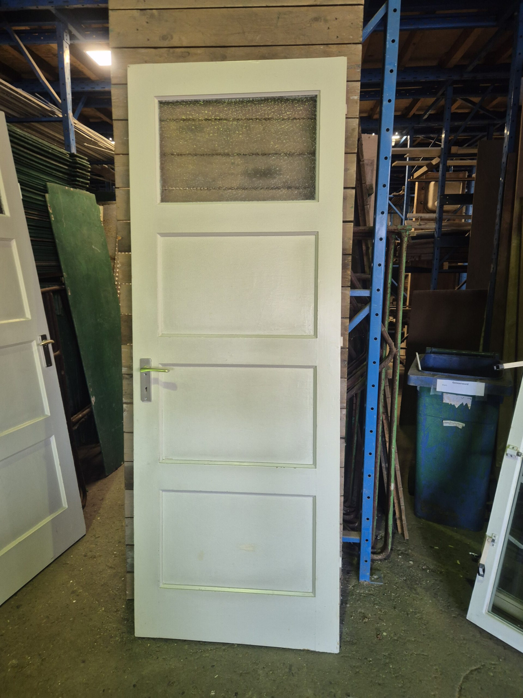 Binnendeur met vier vakken waaronder 1 vak met glas. Het is een nette stompe binnendeur.