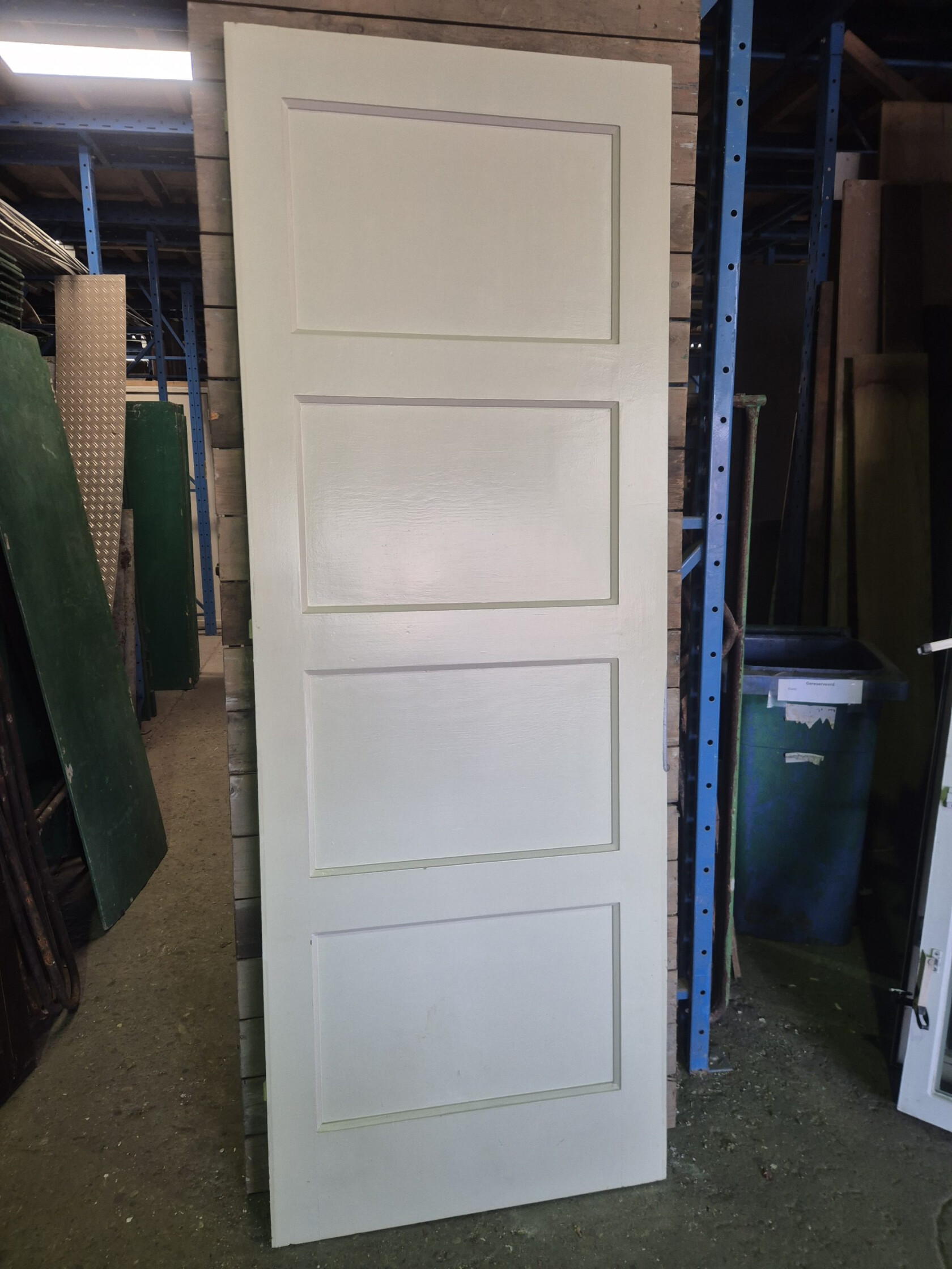 4-vaks paneeldeur met scharnieren aan de deur. Deze deur bevat verder geen klink.