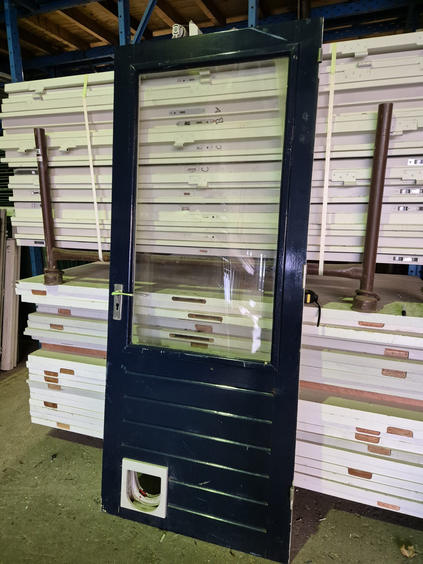 Gebruikte achterdeur met gebruikssporen. Deze deur heeft ook een kattenluikje. En tevens ook dubbel glas.