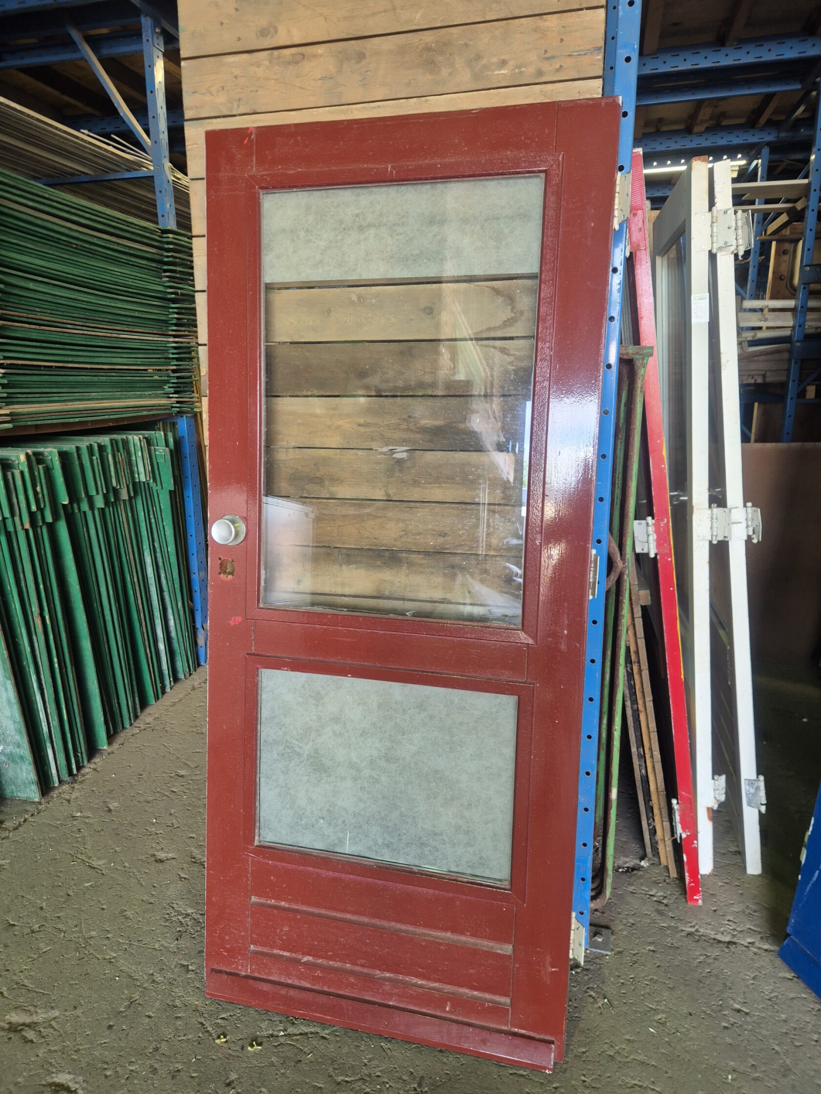 Keurige buitendeur die als voordeur gebruikt kan worden. De twee panelen van dubbel glas zorgen voor voldoende licht inval.
