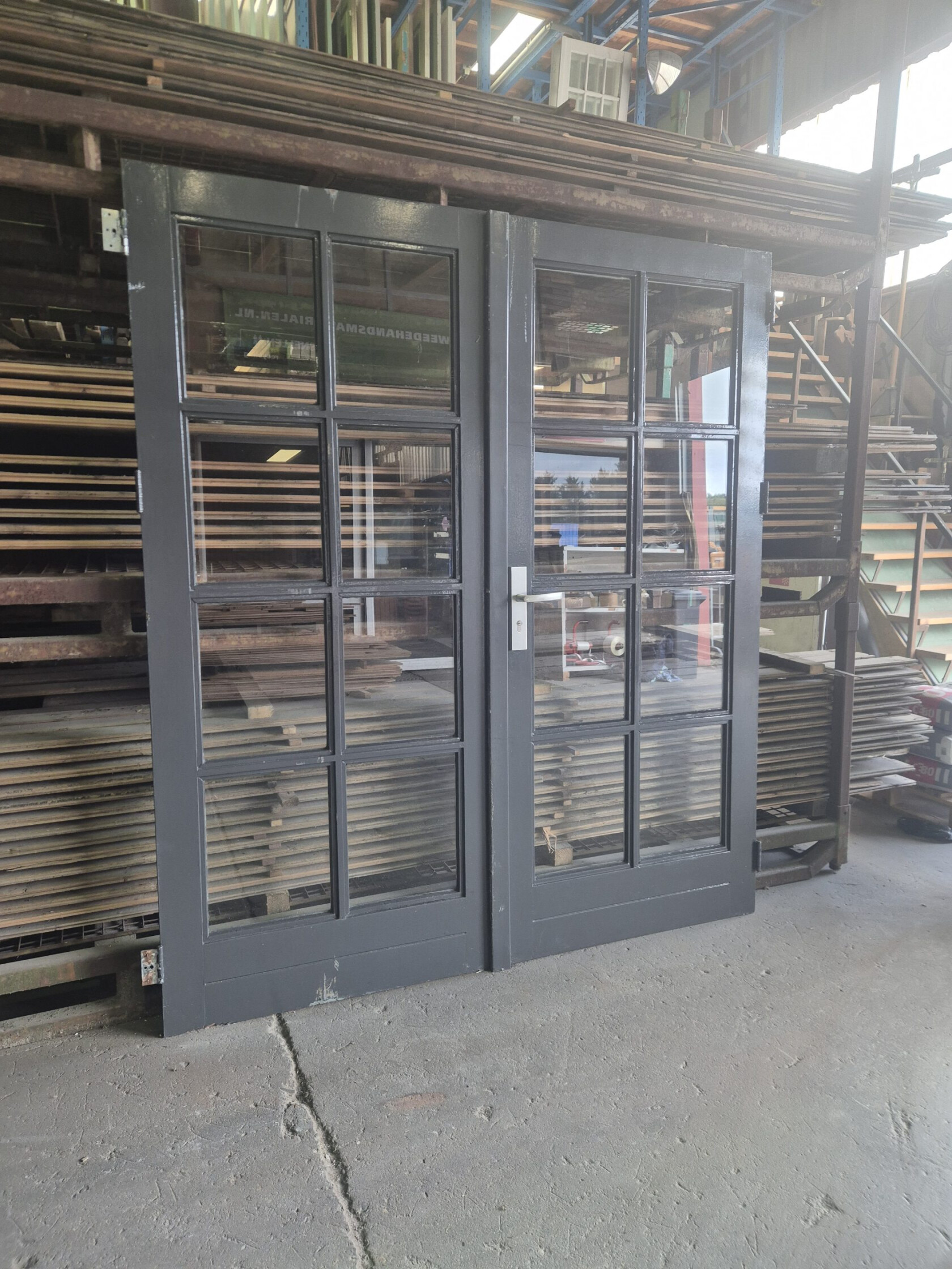 Prachtige antraciet kleurige dubbele openslaande deuren. Deze deuren kunnen prachten dienen als opening naar uw achtertuin. Ze zijn tevens ook zeer mooi voor als deuren in een boerderij.