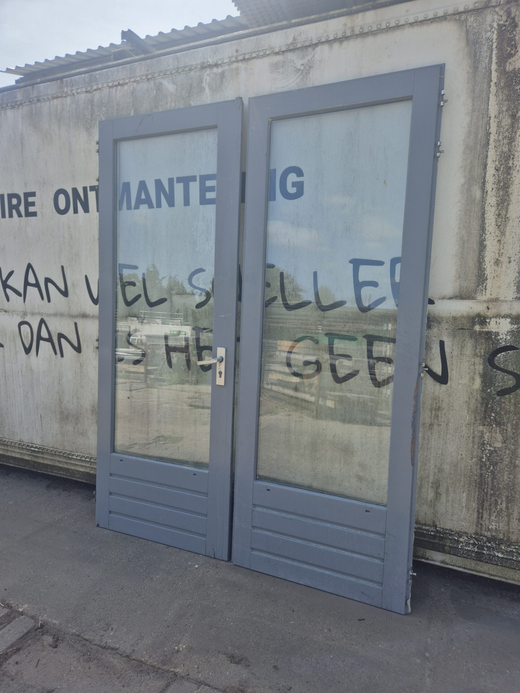 Deze nette hardhouten deuren bevatten dubbel glas. Ze kunnen prima gebruikt worden voor de entree vanuit uw huis naar de achtertuin. Of bijvoorbeeld in uw schuur of tuinhuis. Helaas is er geen kozijn aanwezig.