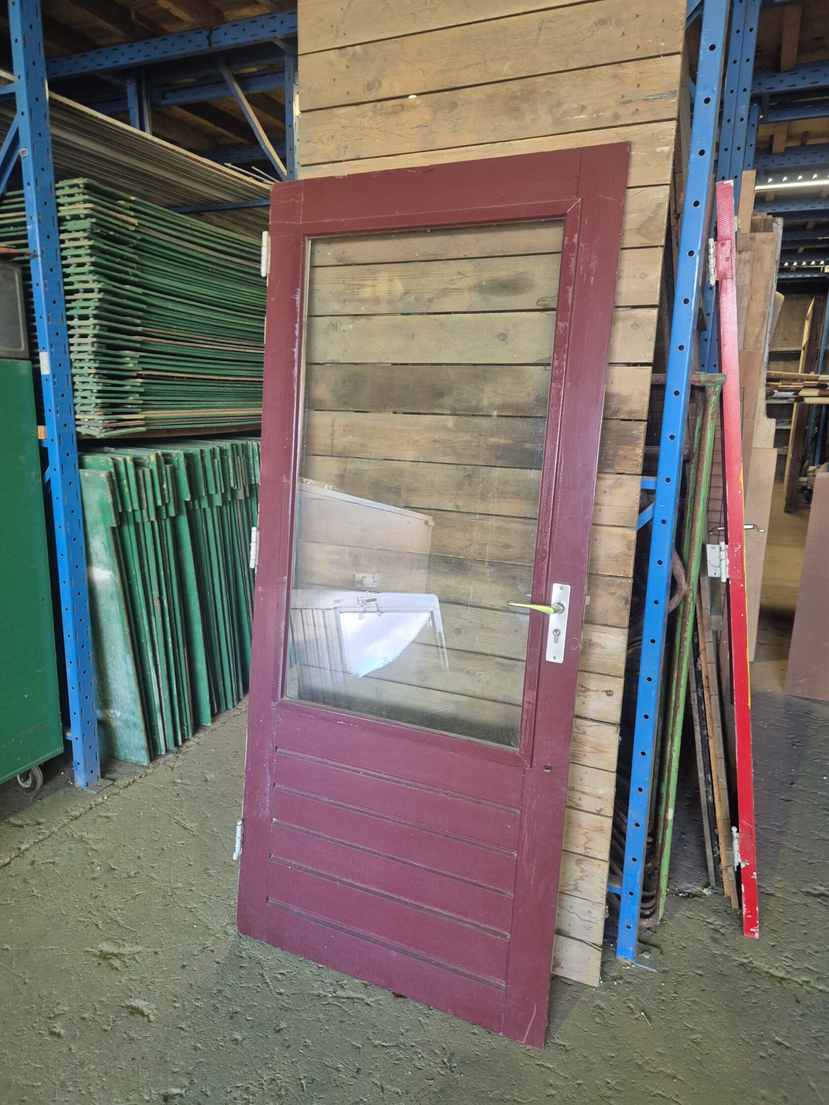 Een gebruikte achterdeur met wat gebruikssporen. Deze kan na een goede opknapbeurt zeer zeker weer jaren mee! Het is een hardhouten deur met dubbel glas.