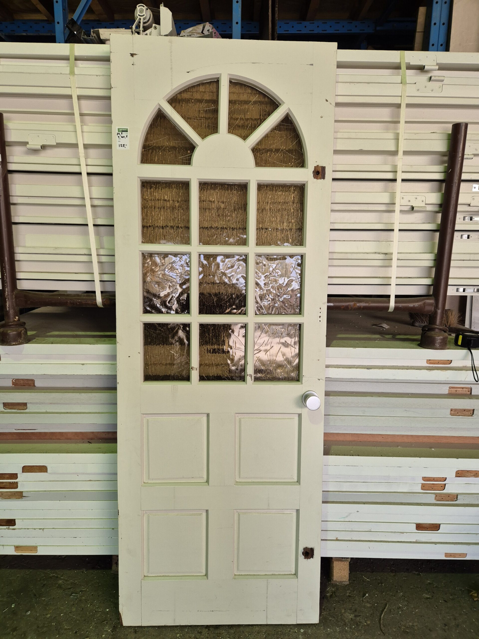 Gave voordeur met kleine ruitjes. De deur is nog in tact, echter aan het hout zijn wel wat puntjes die opgeknapt mogen worden.