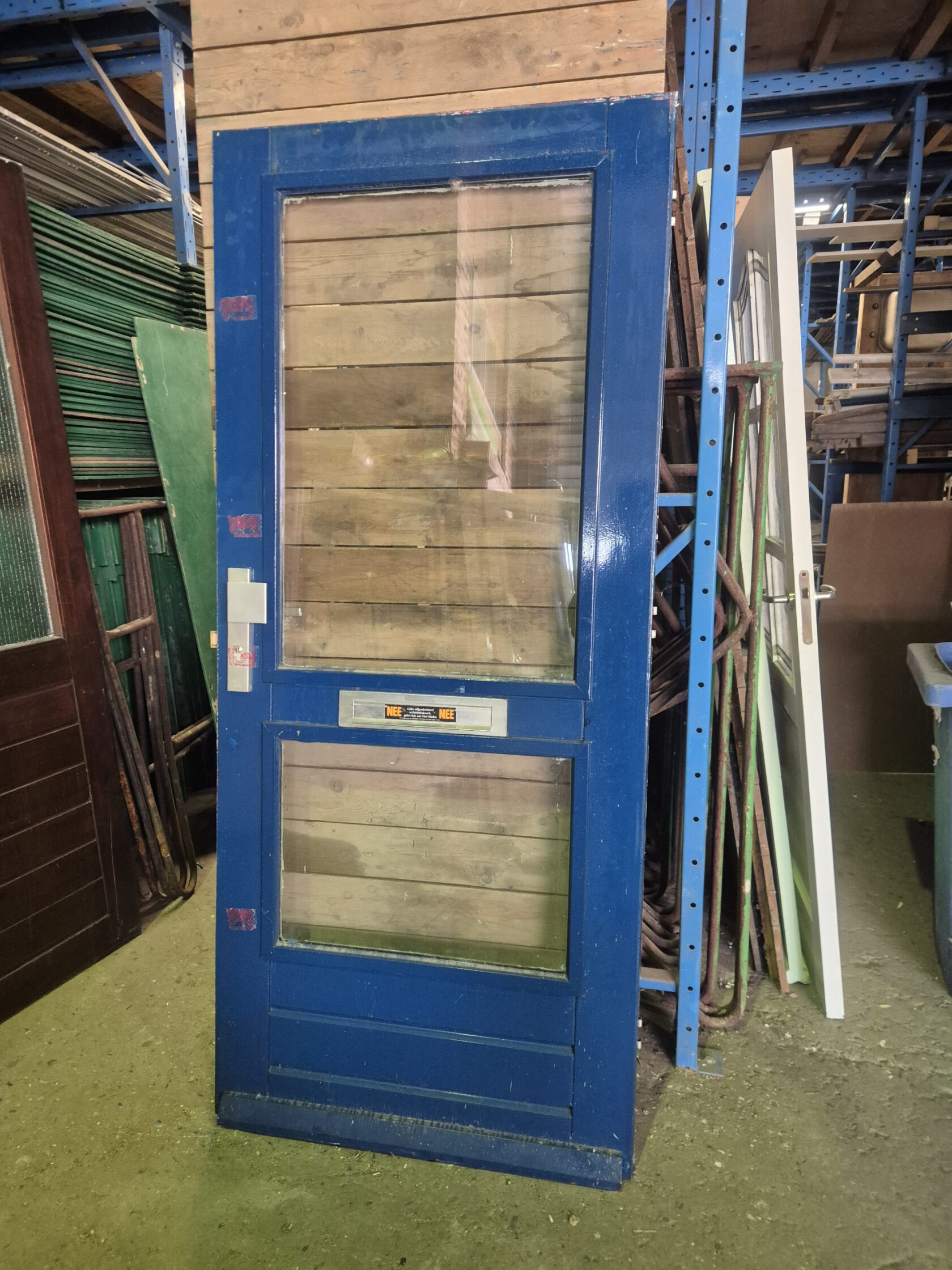 Voordeur met twee glazen panelen van dubbel glas. Deze voordeur bevat ook een brievenbus.