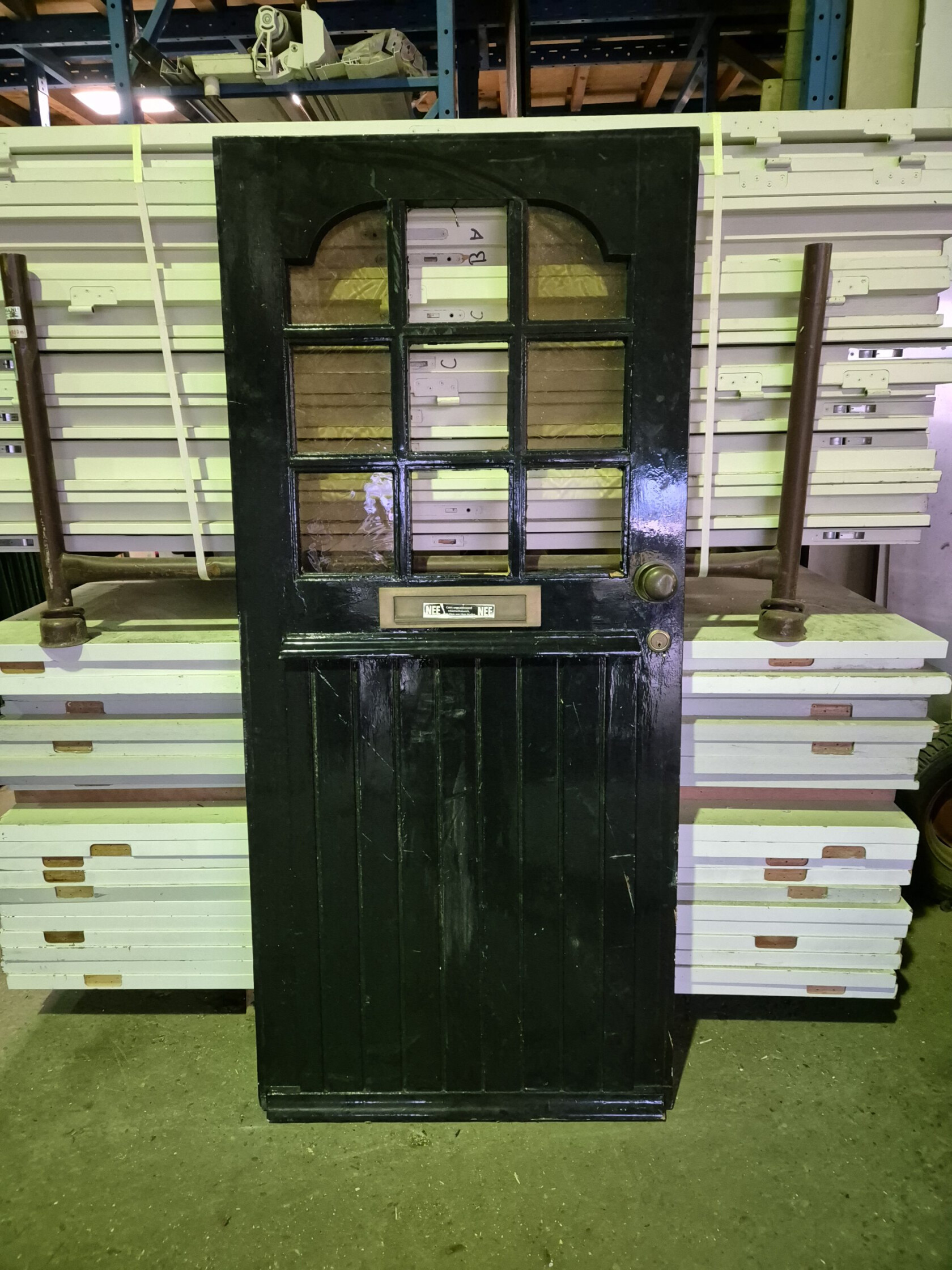 Deze deur heeft wat aandacht nodig. Er zijn vier ruitjes helaas gesneuveld. Verder is het nog een hele nette stevige deur. Een authentieke voordeur die goed onderhouden is geweest.