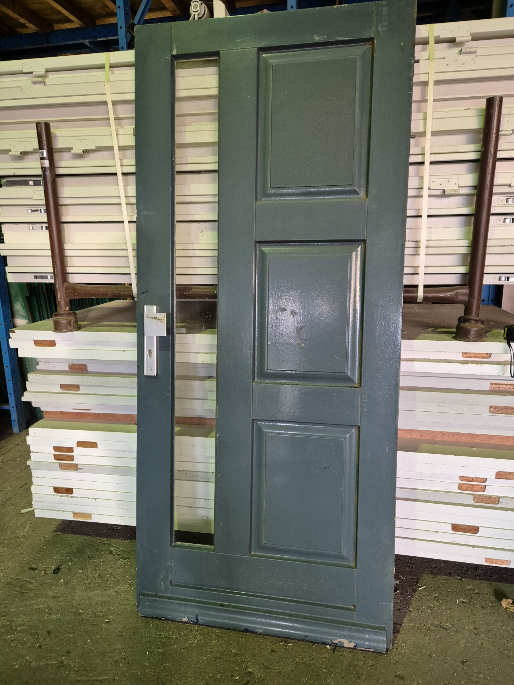 Nette voordeur met aan een kant drie vakken en aan een kant een langwerpige ruit. Deze deur heeft ook een driepunt sluiting.