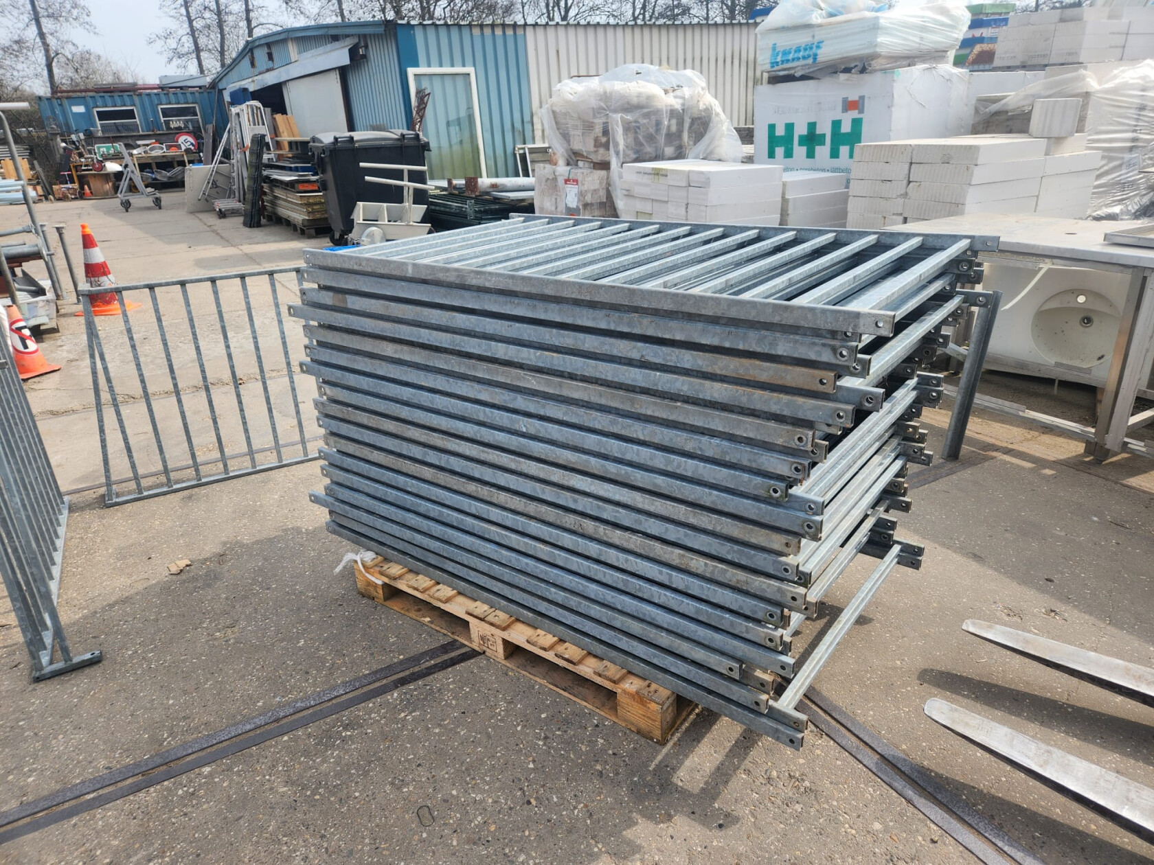 Gegalvaniseerd hekwerk, staanders en eindstukken. Goed voor een 2e kans.