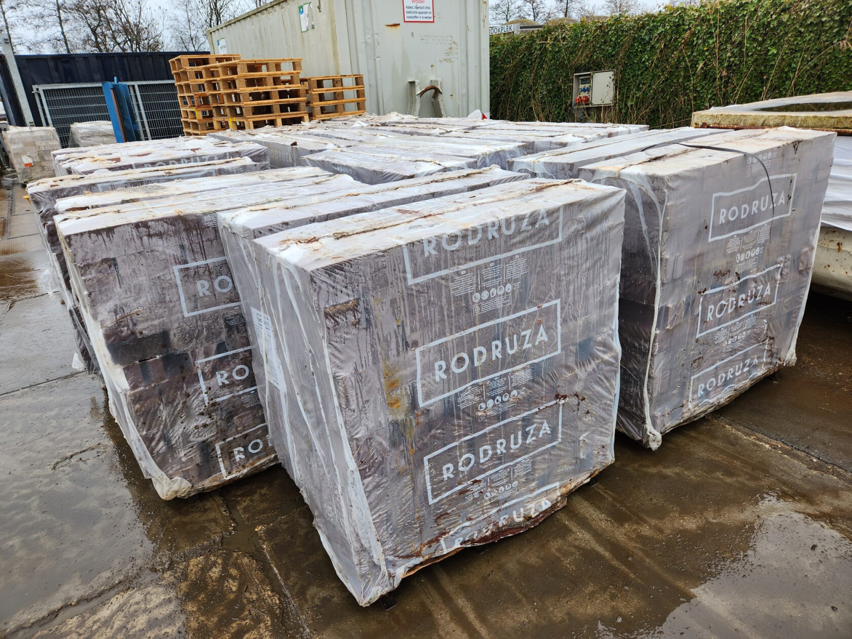 Afmetingen: 210 x 100 x 50 mm Kleur: Aubergine Aantal: 9476 stuks op 23 pallets a 412 stuks M2: ca. 189 m2 Prijs: €144 per pallet