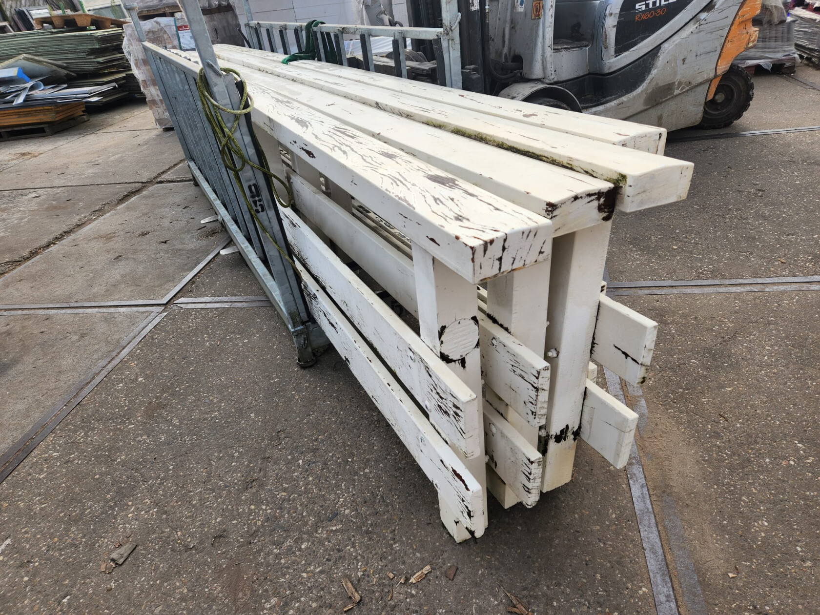 Hardhouten leuningen, brugleuningen. Nog prima voor hergebruik.