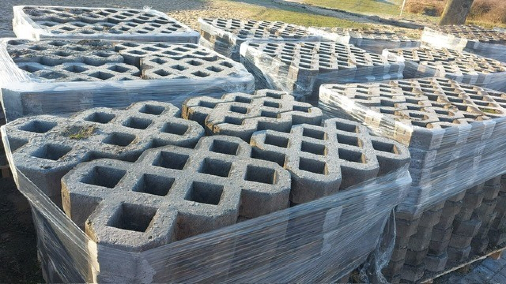 De kunststof grastegels zijn gemaakt van 100% gerecycled kunststof. De grastegels zijn gebruikt en kunnen hergebruikt worden voor bijv. een oprit.